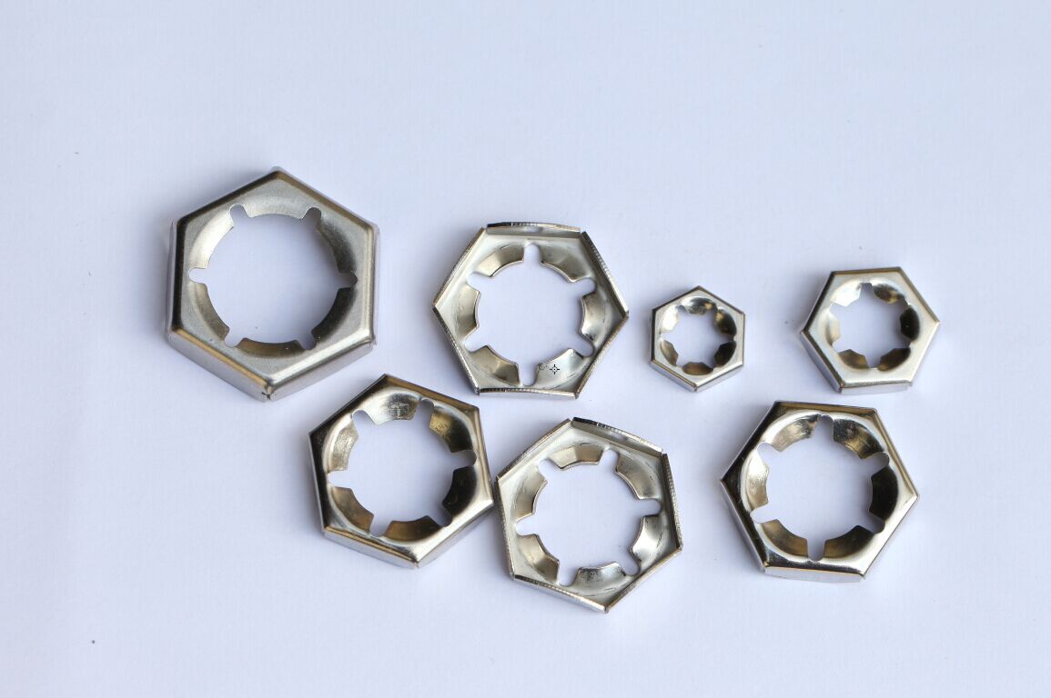 德國標準DIN7967扣緊螺母,SUS304/SUS316不銹鋼扣緊螺母/等換EN1.4401/EN1.4301不銹鋼扣緊螺母/級進模沖壓生產(chǎn)工藝,為了保證扣緊螺母的鎖緊性能,SZJYD品牌扣緊螺母的不銹鋼材質(zhì)都在進行彈性硬化處理!
