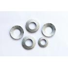 SKK標準接地墊圈、該墊圈是一款法式鎖緊墊圈的改良設計產品、表面不規(guī)則S形條紋有預緊防松作用。墊圈的背面設計有六個爪形剌破角!主要功能是在配合螺栓螺釘擰緊時可以剌破金屬基體表面!主要功能是剌破作用、因此也有人叫剌破墊圈、帶爪觸地墊圈!