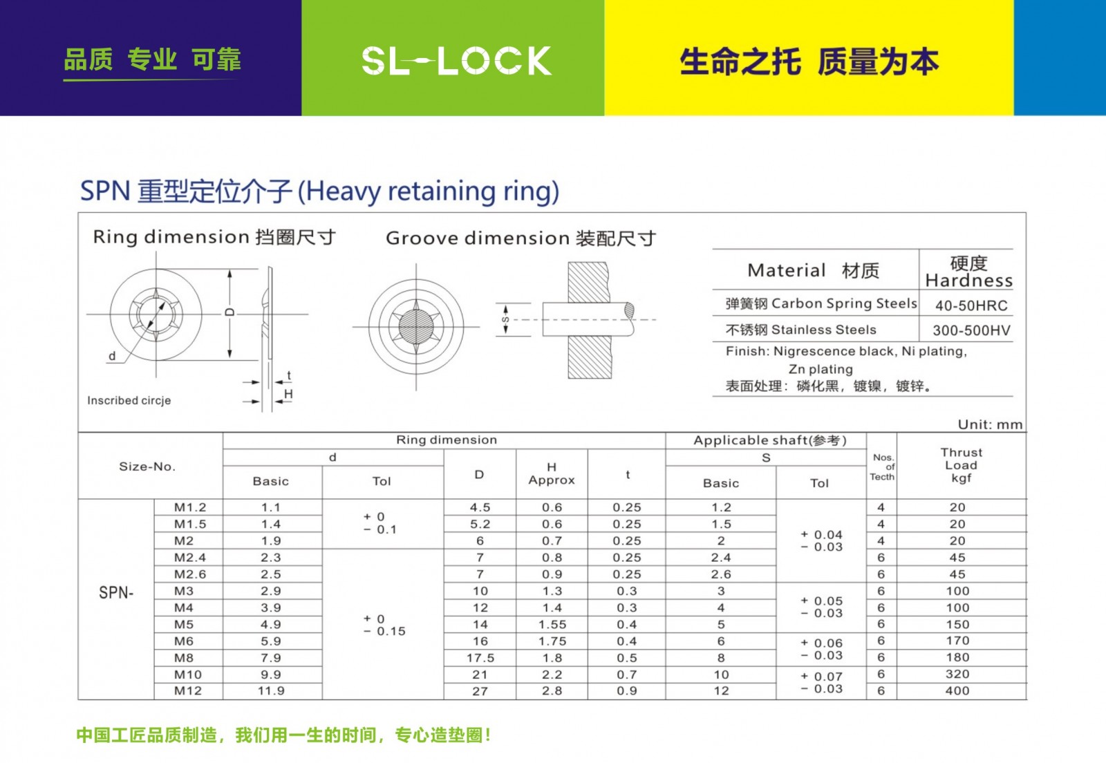 輕型軸用定位介子 執(zhí)行標準:SPN 型號:M1.2-M12 材質:65MN.SUS304.316 表面處理:磷化黑色